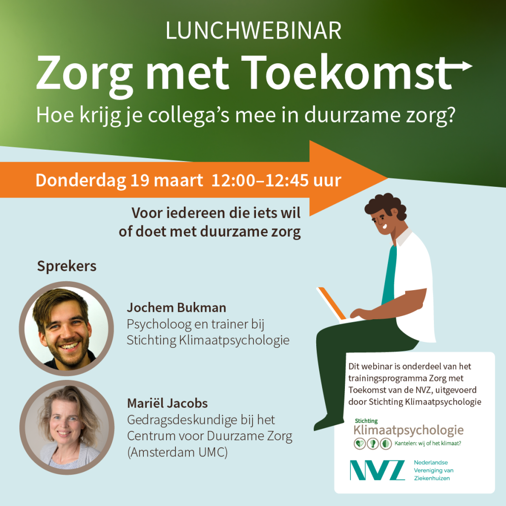 Lunchwebinar Zorg met Toekomst. Hoe krijg je collega’s mee in duurzame zorg?